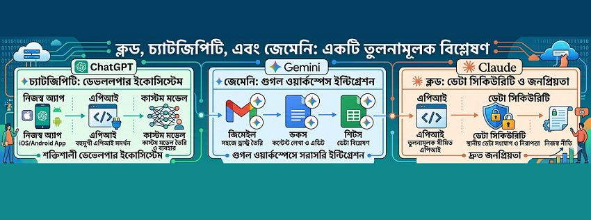 কৃত্রিম বুদ্ধিমত্তা এখন আর শুধু গবেষণাগারের বিষয় নয়। দৈনন্দিন জীবনের সাধারণ তথ্য থেকে শুরু করে সাংবাদিকতা থেকে সফটওয়্যার ডেভেলপমেন্ট, শিক্ষা থেকে নীতিনির্ধারণ সবখানেই এলএলএম বা বড় ভাষার মডেলের ব্যবহার হচ্ছে। বর্তমান এআই বাজারে তিনটি নাম বা সেবা সবচেয়ে বেশি আলোচনায়: চ্যাটজিপিটি, জেমেনি ও ক্লড। এআই সেবার এই তিনটি উদ্যোগ ভিন্ন প্রতিষ্ঠানের তৈরি, তিনটি ভিন্ন দৃষ্টিভঙ্গি নিয়ে গড়ে উঠেছে।