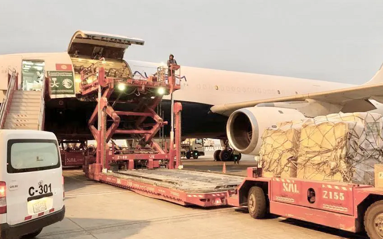 সৌদি প্রেস এজেন্সি জানিয়েছে, উড়োজাহাজটি ১৬ টন চিকিৎসা সামগ্রী বহন করছে।