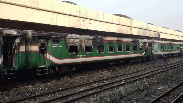 এর আগে, গত ১৮ ডিসেম্বর রাত ১১টায় নেত্রকোণা থেকে মোহনগঞ্জ এক্সপ্রেস ট্রেনটি ঢাকার উদ্দেশ্যে রওনা হয়। কিন্তু ১৭ ডিসেম্বর ভোর পৌনে পাঁচটার দিকে ঢাকার বিমানবন্দর স্টেশন এলাকায় ট্রেনটিতে আগুন দেওয়া হয়। আগুন দেওয়ার পর ট্রেনটি প্রায় ১২ কিলোমিটার দূরে এসে ঢাকার তেজগাঁও রেলস্টেশন এলাকায় থামে। আগুনে ট্রেনের তিনটি বগি পুরোপুরি পুড়ে যায়। পরে একটি বগি থেকে চারজনের লাশ উদ্ধার করা হয়।