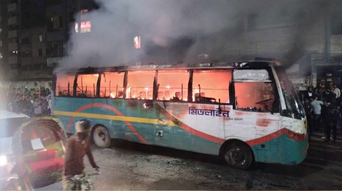 মোহাম্মদপুরে মিডলাইন পরিবহনের বাসে আগুন – DesheBideshe