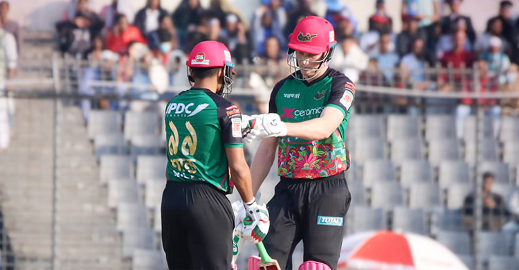 লক্ষ্য ছিল ১৫৪ রানের। টপ অর্ডারে সামিত প্যাটেল (৯ বলে ১৩), নাজমুল হোসেন শান্ত (১৬ বলে ১৮ ), জাকির হাসান (০) সুবিধা করতে না পারলেও ওপেনিংয়ে ৫২ বলে ৬ চার আর ৩ ছক্কায় ৬১ রানের ম্যাচ জেতানো ইনিংস খেলেন আইরিশ হ্যারি টেক্টর।