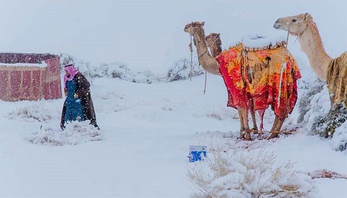 রিয়াদ, ১৪ ডিসেম্বর – মধ্যপ্রাচ্যের দেশ সৌদি আরবকে মরুভূমির দুর্গম অঞ্চল হিসেবেই চেনেন বিশ্ববাসী। তবে এবারের শীতে মরুর দেশটিতে দেখা গেলো শুভ্র তুষার। দেশটির উত্তর-পশ্চিমাঞ্চলে অবস্থিত তাবুক পাহাড়ে তুষারপাতে আবৃত হয়ে গেছে। যা দেখলে যে কারো চোখ এবং অন্তরে প্রশাস্তি চলে আসে।
